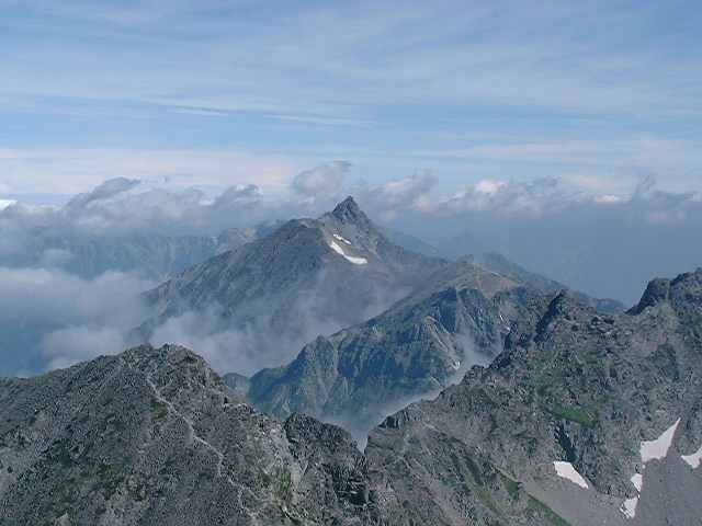 奥穂高だけから槍ヶ岳を望む